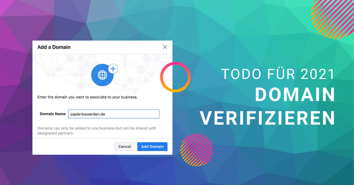Bestimmt hast du schon gehört, dass es bei Facebook möglich ist, den eigenen Domain-Namen zu verifizieren. Diese Möglichkeit gibt es schon länger, aber gerade jetzt solltest du dich näher damit befassen. Ein verifizierter Domain-Name verhindert auf Facebook eine missbräuchliche Verwendung deiner Domain.
