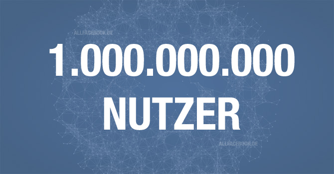Wie Mark Zuckerberg gerade verkündet hat besitzt Facebook nun über eine Milliarde aktive Nutzer weltweit! Als aktiven Nutzer zählt Facebook jeden Nutzer der sich innerhalb der letzten 30 Tage mindestens ein einziges Mal eingeloggt hat. Laut eigenen Statistiken loggen sich über 50% der Nutzer täglich auf Facebook ein, damit wären also über 500 Millionen Nutzer pro Tag auf Facebook aktiv.