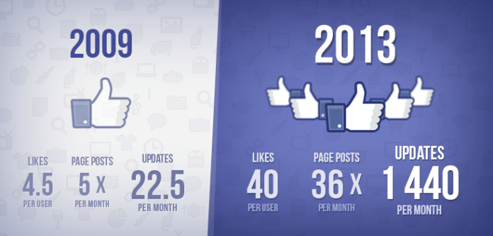 Heute Morgen haben die Kollegen von den Socialbakers uns mit einer spannenden Analyse überrascht. Untersucht wurde, wie sich sowohl das Like-Verhalten der Nutzer als auch das Post-Verhalten der Facebook Pages in den letzten vier Jahren verändert hat: