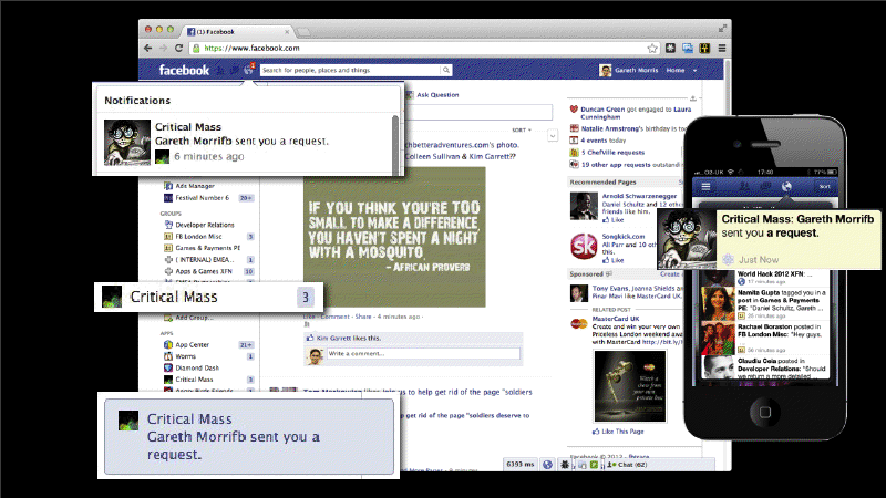 Der letzte Vortrag über Games wurde von Gareth Morris gehalten. Games sind gute Showcases für optimale Integrationen: Sie bleiben auf Dauer und erzeugen viele Stories. Neben Achievements und Scores war das eigentliche Thema eher die optimale Integration von Requests, Feed, Open Graph und Notifications. Und nochmals der Hinweis, dass Mobile dem Desktop in Sachen Funktionalität der Facebook Plattform in nichts nachsteht und all diese Implementierungen ebenfalls bietet.