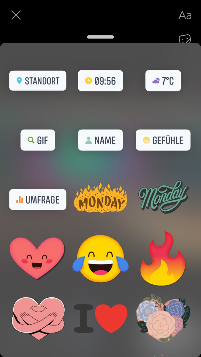 Dieses Vorgehen ist von den Funktionen her am schwächsten. Außer statischen Stickern, die man direkt aufs Bild legt, ist keine weitere Bearbeitung möglich. Umfragen und ähnliches können auch nicht eingefügt werden.