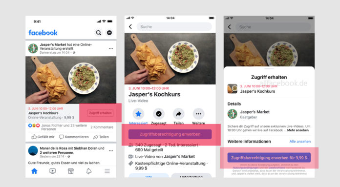 Ab sofort ist es auf Facebook möglich kostenpflichtige Online Events einzustellen und komplett von Facebook abwickeln zu lassen: