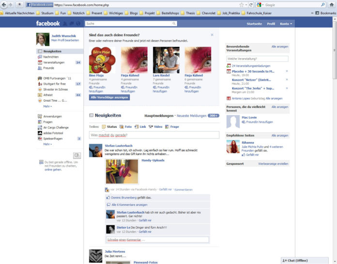 Dafür hängts dauernd bei den Events und zeigt Fehler an, dass nix auf der Event-Pinwand gepostet werden kann …