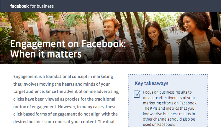 Gestern hat Facebook ein Whitepaper unter dem Titel „Engagement on Facebook: When it matters“ veröffentlicht. Damit möchte das Social Network den in den letzten Monaten eingeschlagenen Weg im Bereich der Anzeigen verdeutlichen. Die Kernaussagen lauten: