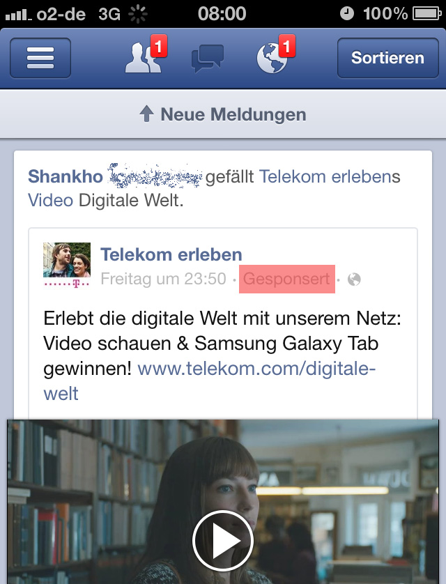 Tatsache ist, dass viele der Nutzer gar nicht bemerken wie massiv Facebook inzwischen auch auf dem eigenen Handy wirbt. Denn nur weil es in der mobilen Anwendung keine Seitenleiste mit Werbung gibt, bedeutet dies nicht, dass die mobile Version von Facebook werbefrei ist.