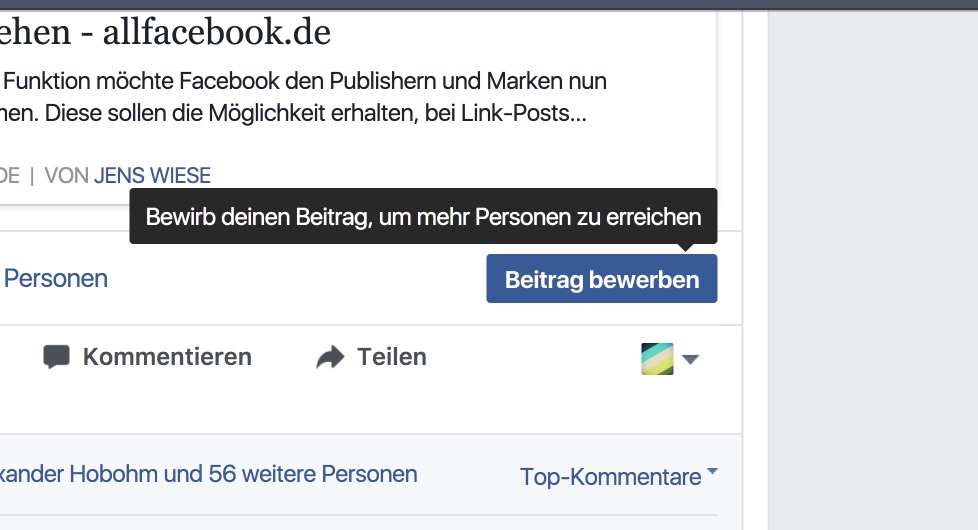 Bisher können fast alle Formate auf einer Facebook Seite beworben werden und Facebook bewirbt dies auch mit der Boost-Funktion enorm. Wer kennt nicht die regelmäßige Meldung auf der Facebook Seite, dass ein Beitrag viel besser performt als ein anderer. Mit der passenden Anmerkung, ihn noch zu bewerben.