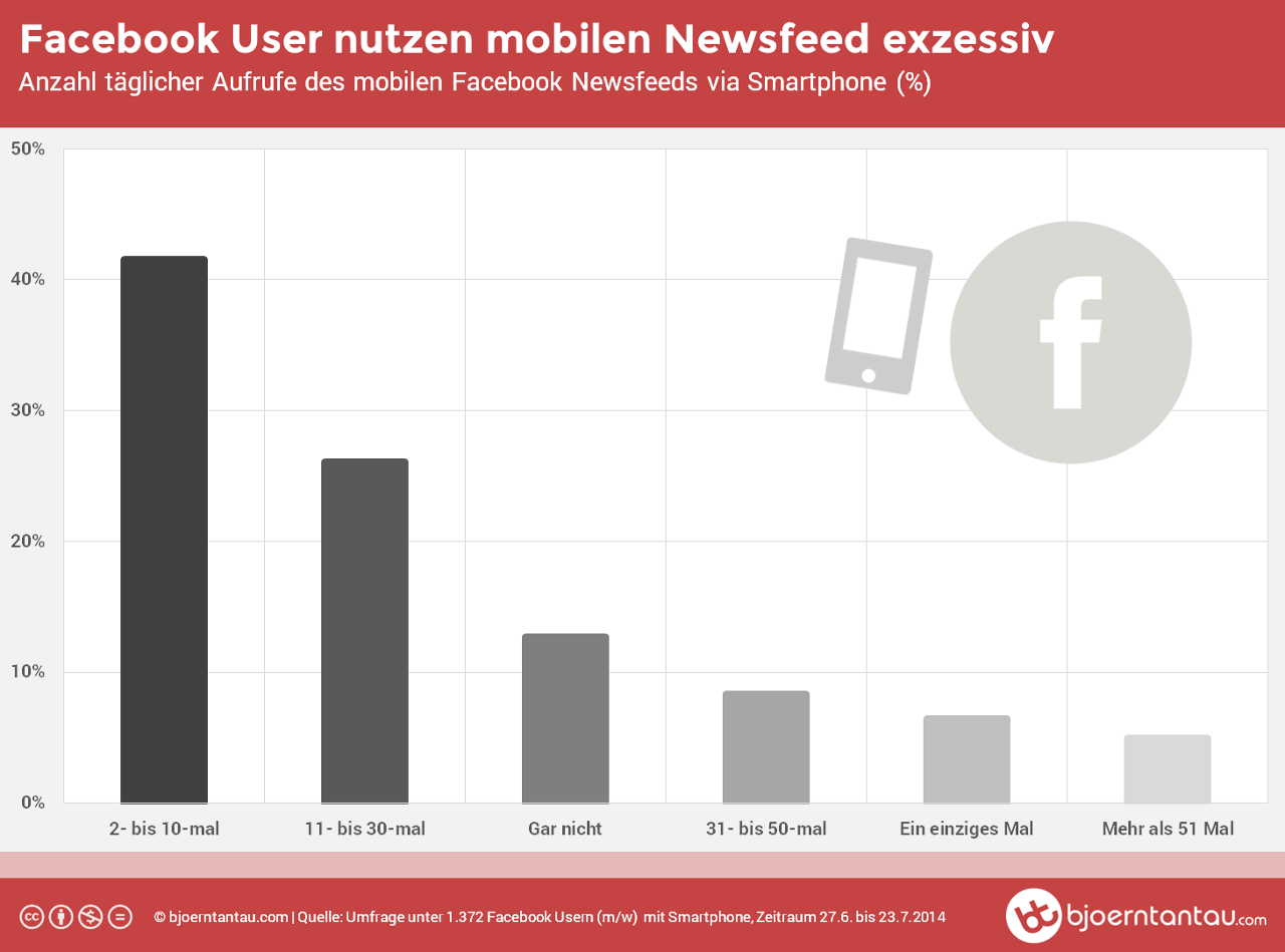 Was tut man, wenn gerade keine passende Analyse zur Hand ist? Genau, man startet seine eigene. Genau dies hat Björn Tantau gemacht. Er wollte wissen, wie intensiv die Facebook-Nutzer den mobilen Newsfeed nutzen. In einer extra dafür erstellten Umfrage im Zeitraum vom 27. Juni bis zum 23. Juli befragte er insgesamt 1.372 Facebook-Nutzerinnen und Nutzer.