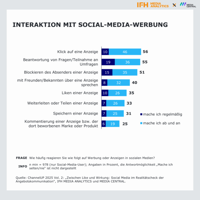 Die IFH-Studie „ChannelUP 2025 Vol. 2 – Zwischen Like und Wirkung“ befragte 1.000 Konsument*innen zur Rolle von Social Media in der Angebotskommunikation.
